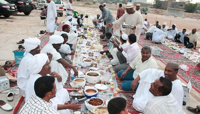 وعن المائدة الرمضانية في السودان فتقول السيدة آيات الحاج إنها تختلف عن بقية العام بوجود أطعمة وأشربة ثابتة على مدار الشهر في كل مائدة افطار سودانية مع نكهة التنوع في الإعداد لكل منطقة حيث يكون الإيدام الثابت ويسمى في السودان( ملاح ) هو التقليه التي تتكون من اللحمة المفرومة أو المجففة ويضاف إليها الصلصة والبهارات والويكة الجافة المطحونة ويتم تناولها مرة مع العصيدة المصنوعة من الذرة أو القراصة المصنوعة من القمح وهي تحل محل الخبز الذي لا يكثر استعماله في رمضان وتعتبر التقلية أو النعيمية هي الأساس الذي ترتكز عليه المائدة الرمضانية بجانب إضافة أطعمة أخرى حسب كل منطقة ومن الثوابت أيضا البلح والكبكبيك والبليلية بأنواعها ومشروبات الحلومر والابري الأبيض والتبلدي والكركدية والعرديب وهنالك إضافات من الليمون وغيره من العصائر أما في السحور فيتم تناول الرقاق باللبن أو النشا أو المديدة المصنوعة من الدخن أو الذرة مع أكلات خفيفة في بعض الولايات، بحسب دريدة "الشرق" .