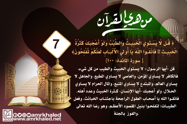 amrkhaled ﴿ قُلْ لَا يَسْتَوِي الْخَبِيثُ وَالطَّيِّبُ وَلَوْ أَعْجَبَكَ كَثْرَةُ الْخَبِيثِ فَاتَّقُوا اللَّهَ يَا أُولِي الْأَلْبَابِ لَعَلَّكُمْ تُفْلِحُونَ