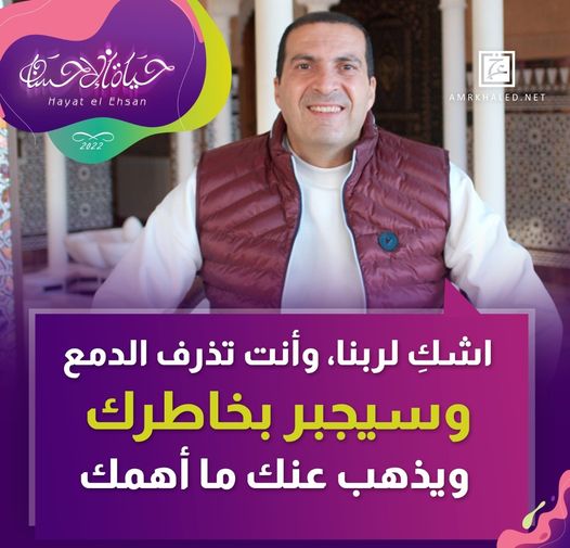 amrkhaled "اشك لربنا، وأنت تذرف الدمع وسيجبر بخاطرك ويذهب عنك ما أهمك".