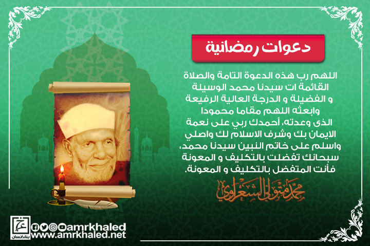 اللهم رب هذه الدعوة التامة والصلاة القائمة آت سيدنا محمد الوسيلة والفضيلة والدرجة العالية الرفيعة وابعثه اللهم مقامًا محمودًا الذي وعدته، أحمدك ربي على نعمة الإيمان بك وشرف الإسلام لك، وأصلي وأسلم على خاتم النبين سيدنا محمد، سبحانك تفضلت بالتكليف والمعونة فأنت المتفضل بالتكليف والمعونة.