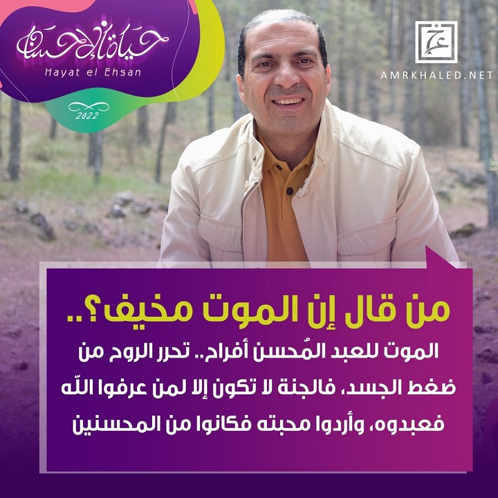 "من قال إن الموت مخيف؟.. الموت للعبد المحسن أفراح.. تحرر الروح من ضغط الجسد، فالجنة لا تكون إلا لمن عرفوا الله فعبدوه، وأرادوا محبته فكانوا من المحسنين".
