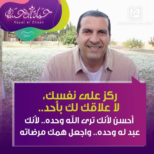 amrkhaled "ركز على نفسك، لا علاقة لك بأحد.. أحسن لأنك ترى الله وحده.. لأنك عبد له وحده.. واجعل همك مرضاته".