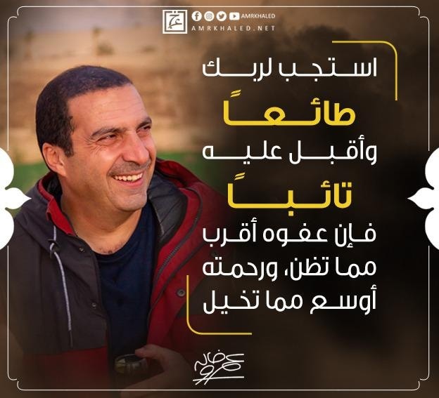 amrkhaled "استجب لربك طائعًا وأقبل عليه تائبًا.. فإن عفوه أقرب مما تظن، ورحمته أوسع مما تتخيل".