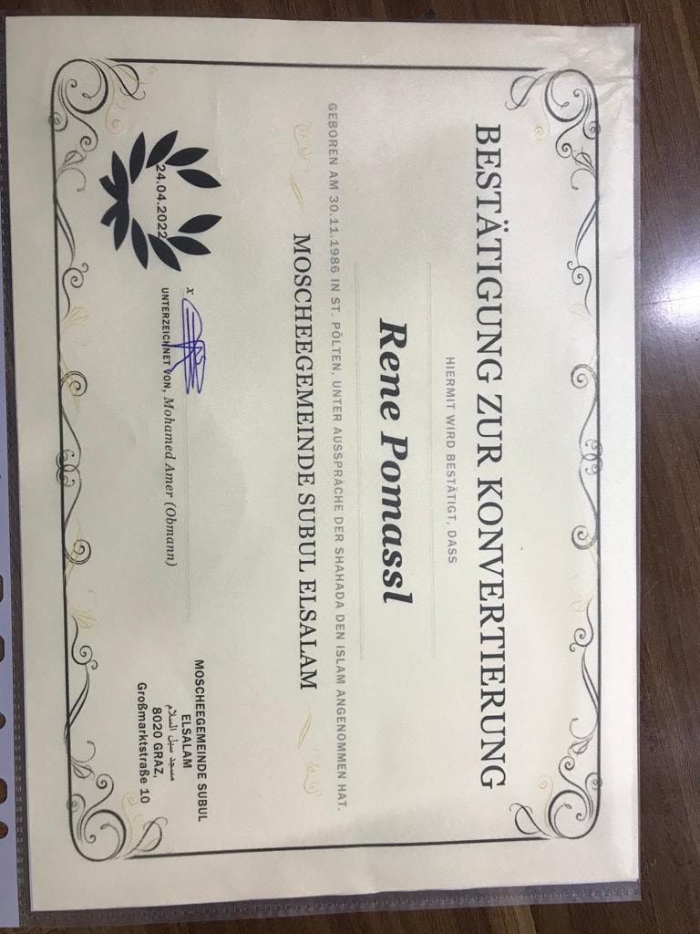 ووثق مقطع فيديو، لحظة ترديد بوماسل الشهادة وراء إمام مسجد "سبل السلام" بمدينة جراتس النمساوية؛ ظهر يوم الأحد، وسط تكبير الحاضرين بالمسجد.