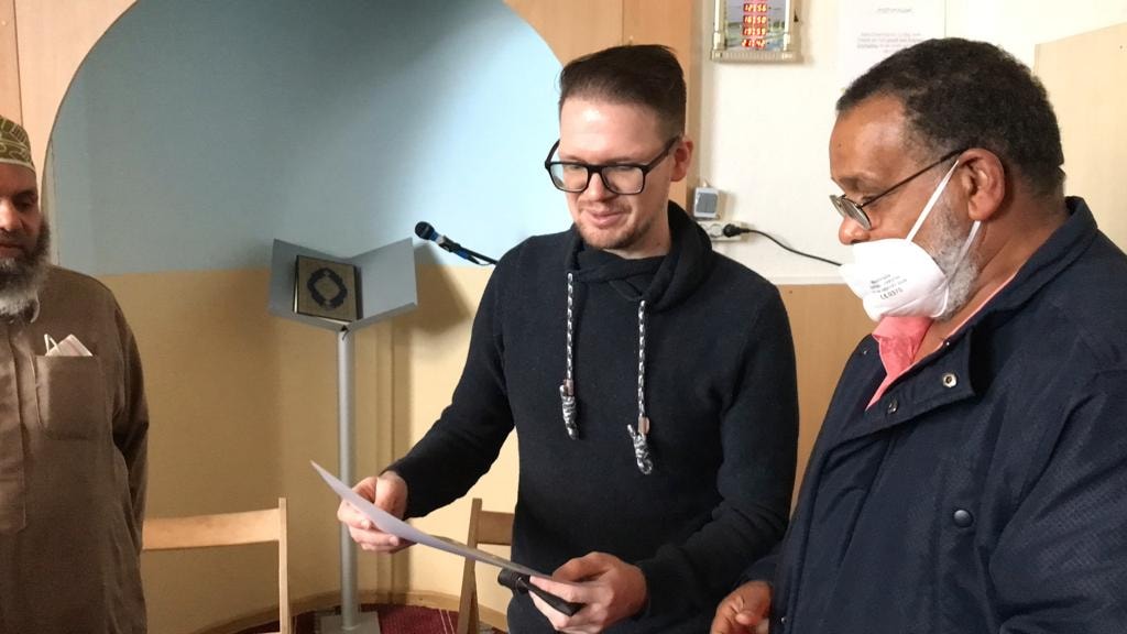 أشهر الرئيس التنفيذي لشركة "سالامانتكس" لحلول الدفع المشفر، رينيه بوماسل، إسلامه في أحد مساجد النمسا.