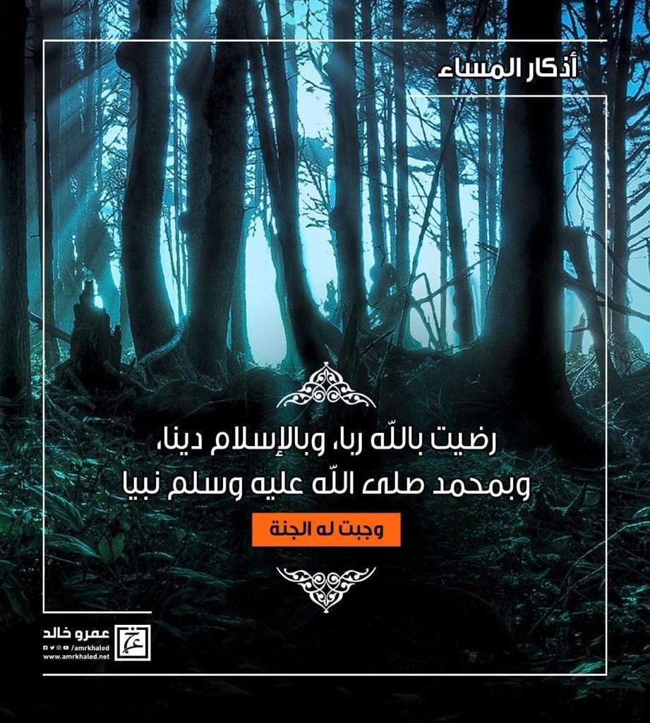 amrkhaled رضيت بالله ربا وبالإسلام دينا وبمحمدصلي الله عليه وسلم نبيا ..من قالها حين يمسي وجبت له الجنة