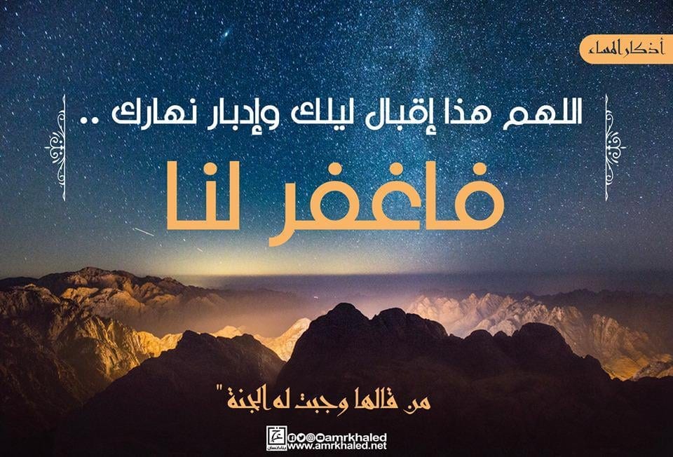 amrkhaled "اللهم إن هذا إقبال ليلك وإدبار نهارك فاغفر لنا " ..من قالها حين يمسي وجبت له الجنة