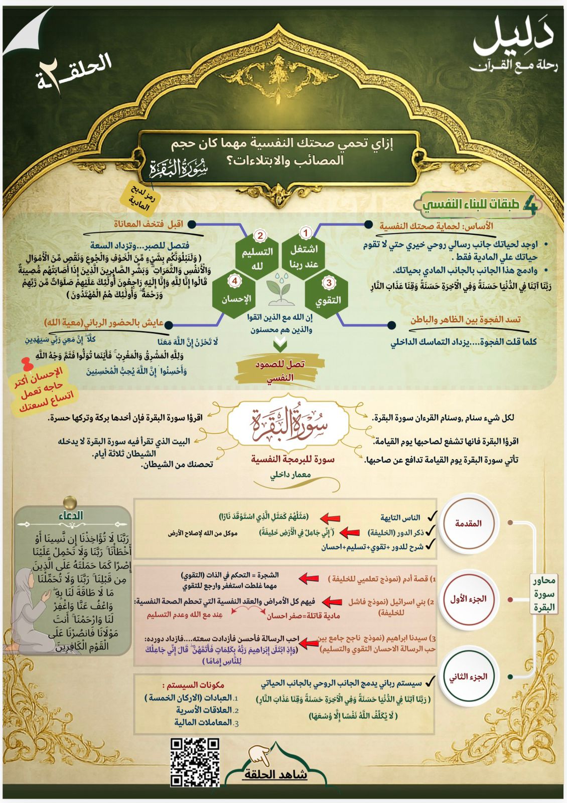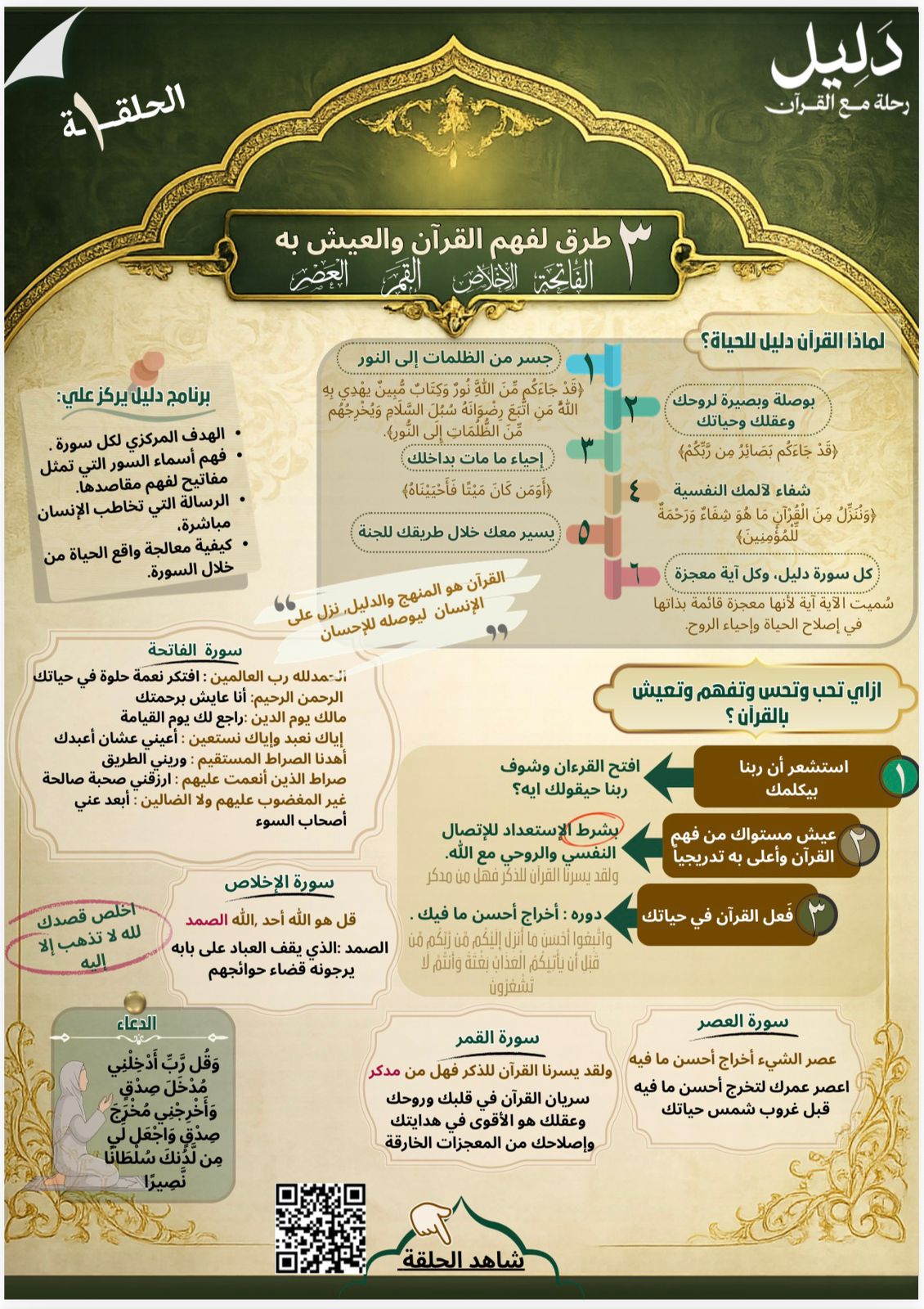 الإنفوجراف يهدف إلى تحويل حلقات البرنامج – كل حلقة على حدة - من فكرة إلى لتطبيق، لأسلوب حياة، في العيش والتفاعل مع القرآن، من أجل طريقة تغيير حياتك كلها.