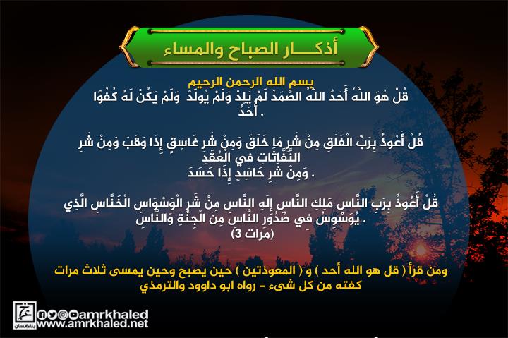 من قرأ قل هو الله أحد والمعوذتين حين يصبح وحين يمسي ثلات مرات كفته من كل شيء