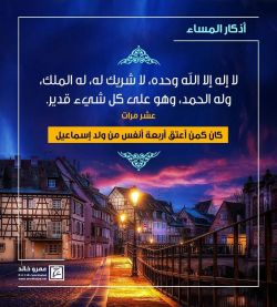 أذكار المساء ..من قالها عشرا كمن أعتق أربع أنفس من ولد إسماعيل