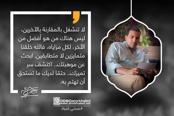 علمتني الحياة.. "لا تنشغل بالمقارنة بالآخرين.. ليس هناك من هو أفضل من الآخر.. لكل مزاياه"