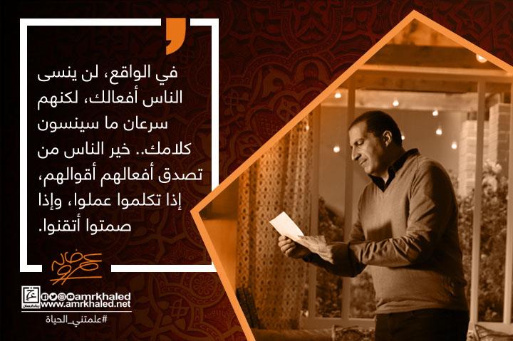 علمتني الحياة.. "في الواقع لن ينسى الناس أفعالك لكنهم سرعان ما سينسون كلامك"