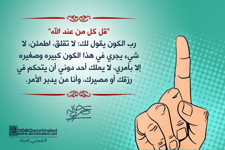 علمتني الحياة.. "رب الكون يقول لك: لا تقلق.. اطمئن.. لا شيئ يجري في هذا الكون بإلا بأمري"