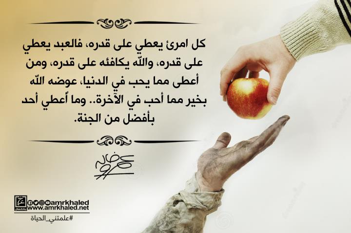 علمتني الحياة.. "كل امرئ يعطي على قدره.. فالعبد يعطي على قدره والله يكافئه على قدره"