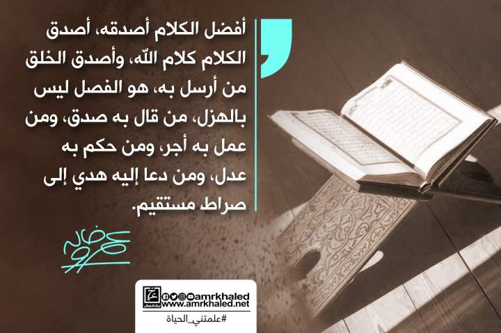 علمتني الحياة.. "أفضل الكلام أصدقه.. وأصدق الكلام كلام الله.. وأصدق الخلق من أرسل به"