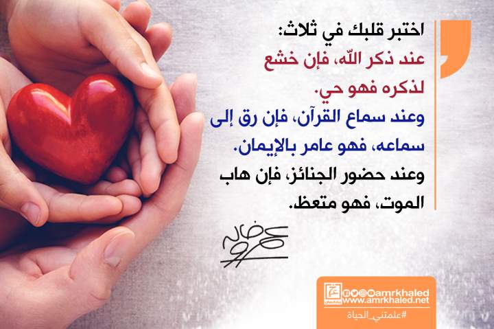 علمتني الحياة.. "اختبر قلبك في ثلاث: عند ذكر الله.. وعند سماع القرآن.. وعند حضور الجنائز"