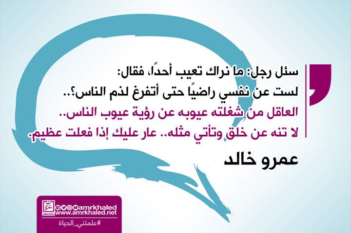 علمتني الحياة.. "العاقل من شغلته عيوبه عن رؤية عيوب الناس.. لا تنه عن خلق وتأتي مثله"
