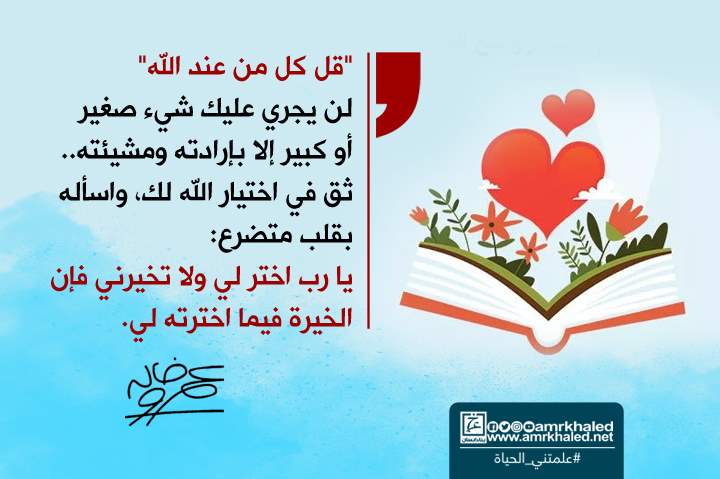 علمتني الحياة.. "لن يجري عليك شيء صغير أو كبير إلا بإرادته ومشيئته.. ثق في اختيار الله لك"