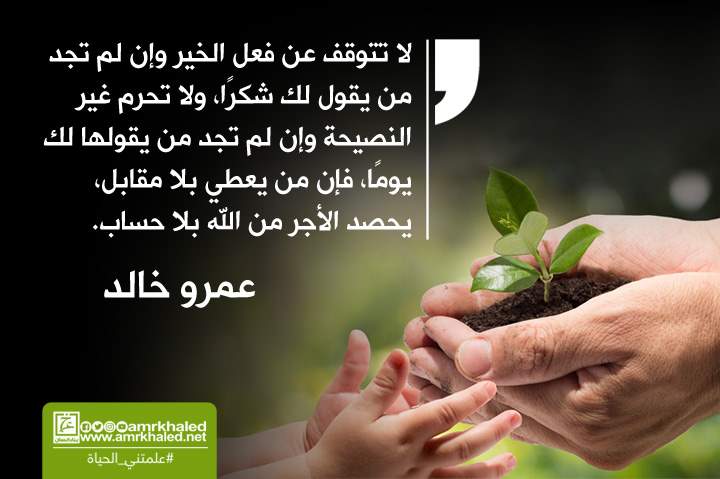 علمتني الحياة.. "إن من يعطي بلا مقابل يحصد الأجر من الله بلا حساب"