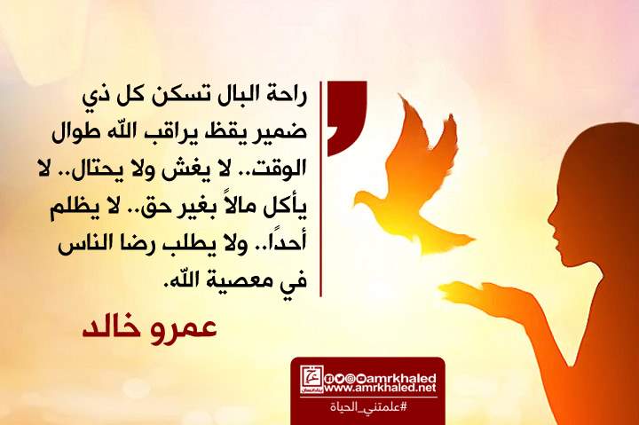 علمتني الحياة.. ."راحة البال تسكن كل ذي ضمير يقظ يراقب الله طوال الوقت"