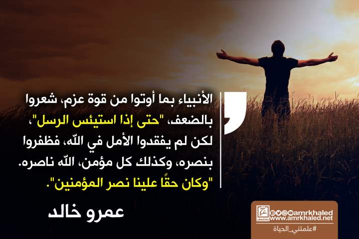 علمتني الحياة.. "الأنبياء بما أوتوا من قوة عزم شعروا بالضعف.. لكن لم يفقدوا الأمل في الله"