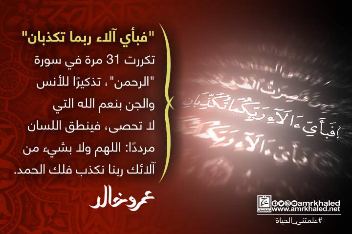 علمتني الحياة.. "لهذا السبب تكررت (فبأي آلاء ربكما تكذبان) 31 مرة بسورة الرحمن"