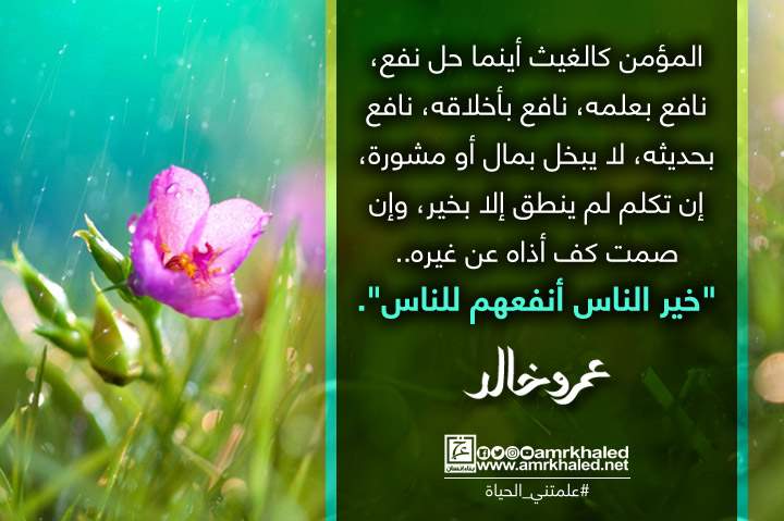 علمتني الحياة.. "المؤمن كالغيث أينما حل نفع .. نافع بعمله.. نافع بأخلاقه.. نافع بحديثه"
