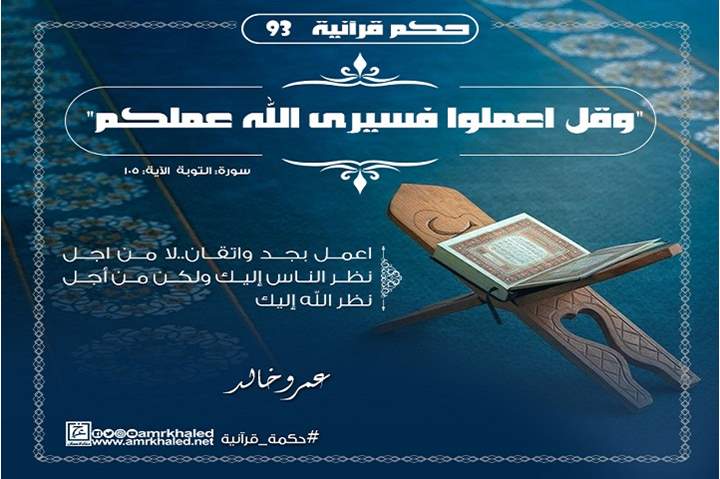 حكم قرآنية.. "اعمل بجد واتقان.. لا من أجل نظر الناس إليك ولكن من أجل نظر الله إليك"