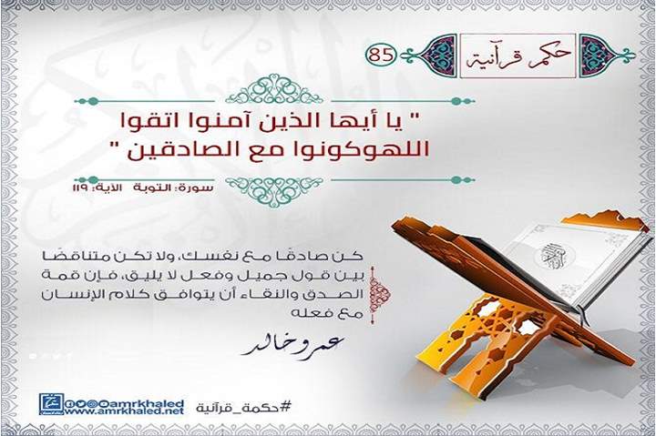 حكم قرآنية.. "كن صادقًا مع نفسك ولا تكن متناقضًا بين قول جميل وفعل لا يليق"