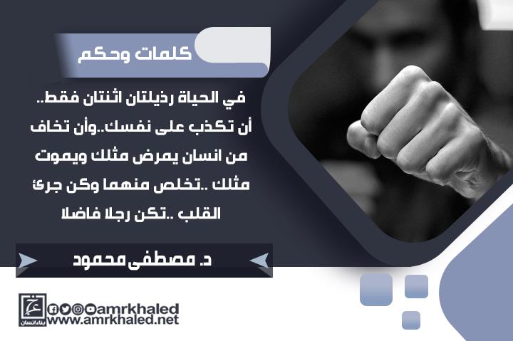في الحياة رذيلتان اثنتان فقط.. أن تكذب على نفسك .. وأن تخاف من إنسان يمرض مثلك ويموت مثلك