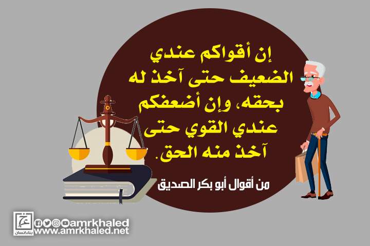 إن أقواكم عندي الضعيف حتى أخذ له بحقه وإن أضعفكم عندي القوي حتى آخذ منه الحق