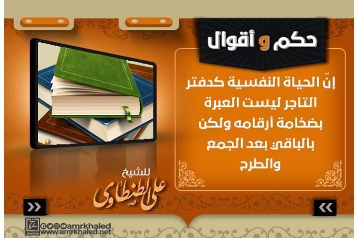 إن الحياة النفسية كدفتر التاجر ليست العبرة بضخامة أرقامه ولكن بالباقي بعد الجمع والطرح