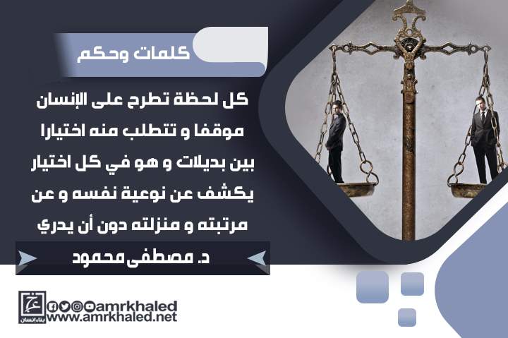 الإتسان .. في كل اختيار يكشف عن نوعية نفسه وعن مرتبته ومنزلته دون أن يدري
