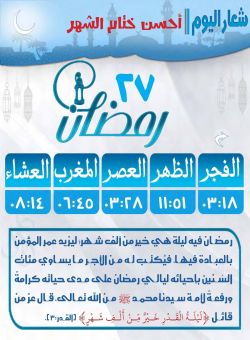 مواقيت الصلاة وموعد الإفطار ليوم الأربعاء 27 رمضان