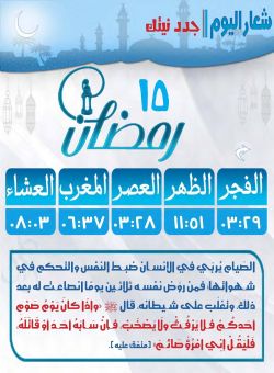 مواقيت الصلاة وموعد الإفطار ليوم الجمعة 15 رمضان