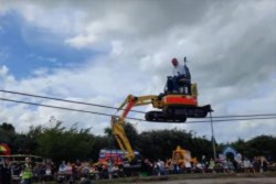 تحد مثير.. يسير بـ "الحفار" على الحبل (فيديو)