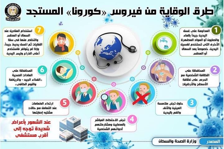 إنفو جراف لدار الافتاء المصرية : 8نصائح ذهبية لمواجهة فيروس كورونا