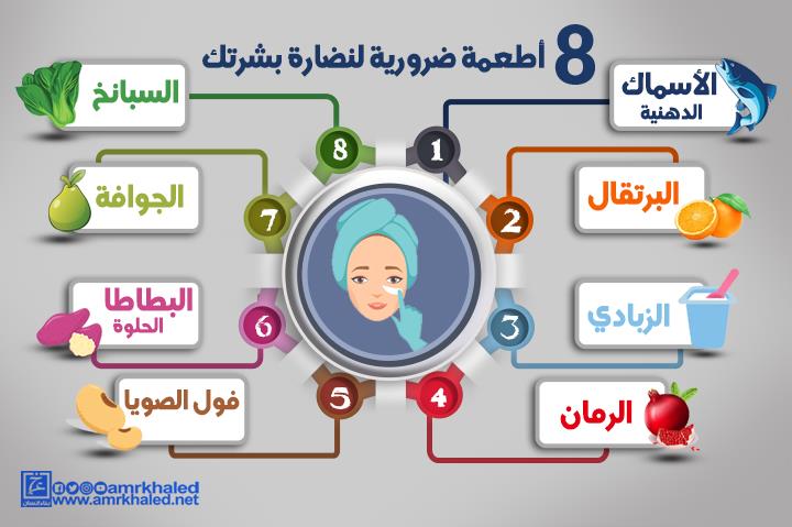 8 أطعمة ضرورية لنضارة بشرتك (إنفوجراف)