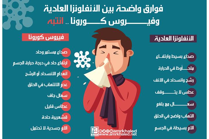 فوارق واضحة بين الأنفلونزا العادية وفيروس كورونا .. انتبه