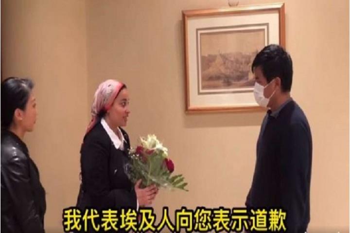 بالفيديو.. مصريون يقدمون باقة ورد واعتذاراً للشاب الصيني ضحية التنمر
