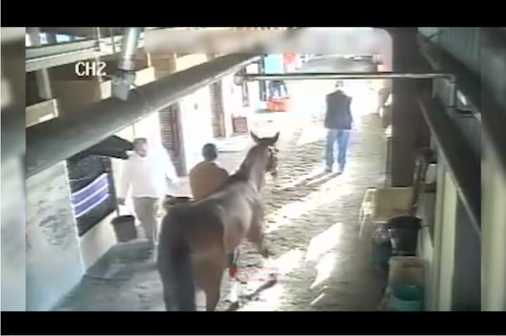 "خيل وشر".. شاهد ما فعله الحصان مع عامل الاسطبل