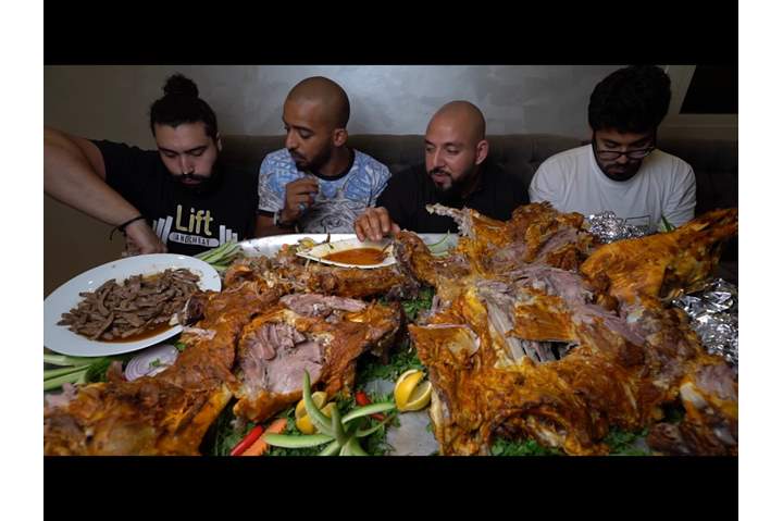 بالفيديو.. 4 شباب يلتهمون بقرة في سباق التحدي