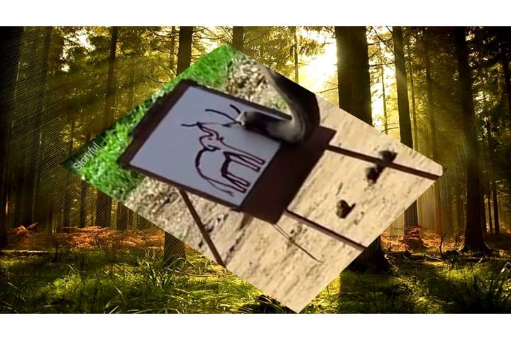 فيل يرسم نفسه بالفرشاة