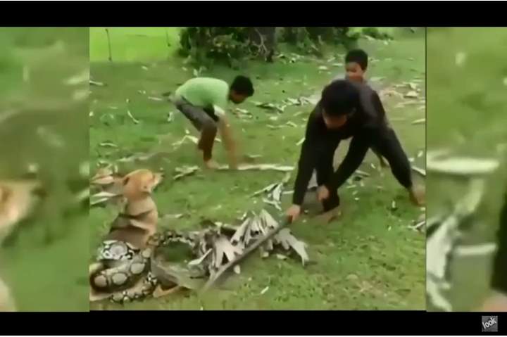 بالفيديو.. ثلاثة أطفال ينقذون كلبهم من أفعى عاصرة
