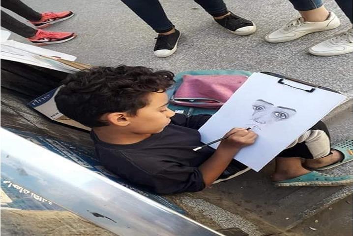 فيديو وصور| "معاذ".. يحول موهبة الرسم إلى عمل ينفق منه على جدته