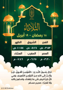 هذا موعد صلاتي المغرب والعشاء في اليوم الثامن عشر من شهر رمضان بتوقيت القاهرة.. اسْتَعنْ باللهِ ولا تَعجز